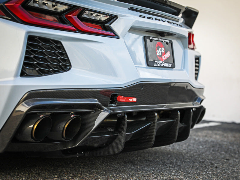 Add aggressive styling and useful functionality to your C8 Corvette with the aFe CONTROL Rear tow hook. Its sleek design not only looks great but is strong enough to safely winch your car onto a tow truck or get towed trackside if the need arises. Our C8 specific CNC machined stem and loop is made of 4130 steel. The stem is black zinc coated for corrosion resistance. The loop is powder coated Red (Blue, Gray, and Black are available). This is not a universal tow hook. The stem was specifically designed for the C8 Corvette and the length was carefully determined to fit the rear bumper. A proper front tow hook to match is also available. (p/n 450-401014-R). Both the stem and bolt threads are pre-coated with Vibra-tite threadlocker. This keeps your tow hook from loosening due to vibration. The special threadlocker is designed to remain flexible, removable, and reusable.