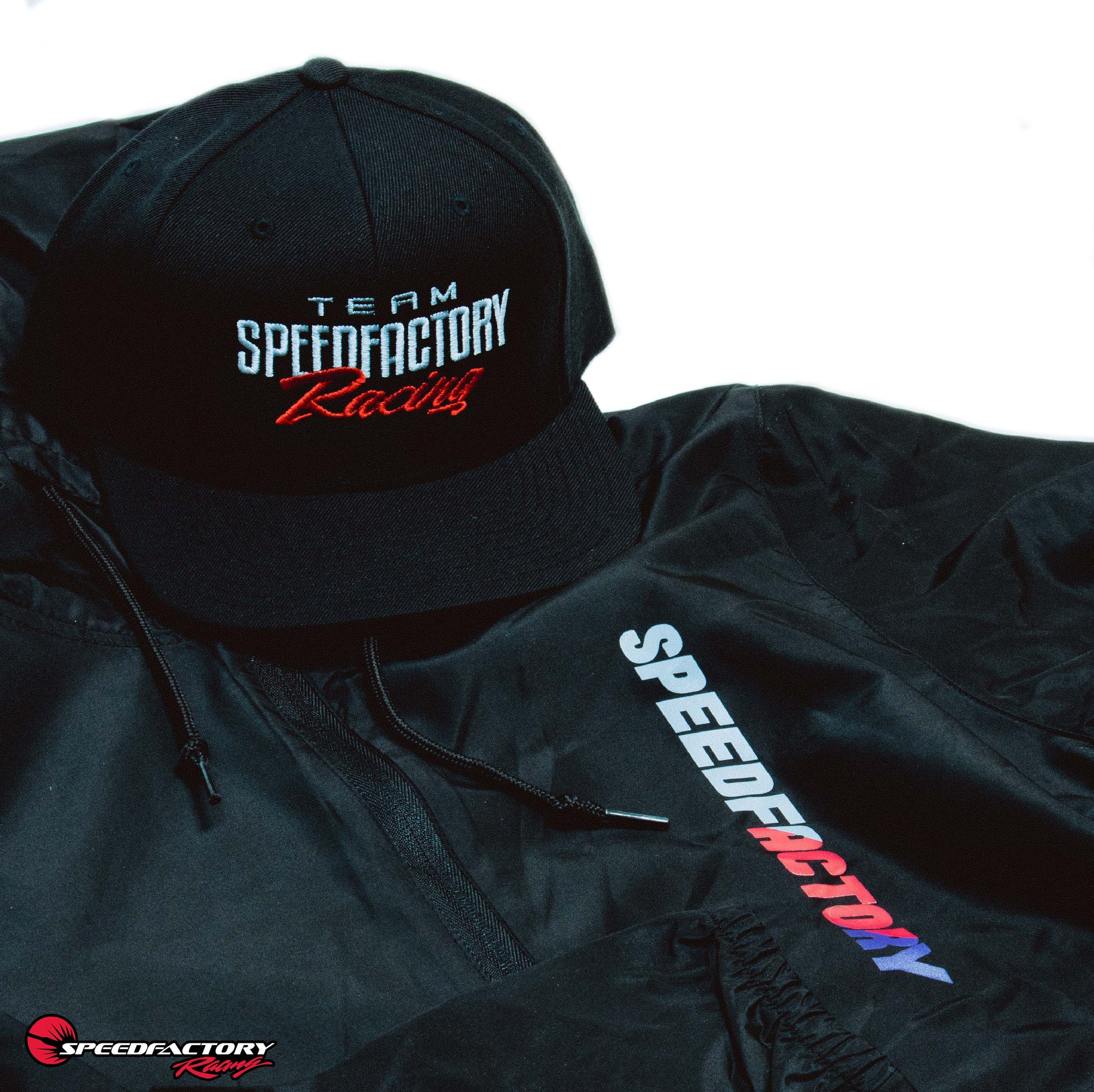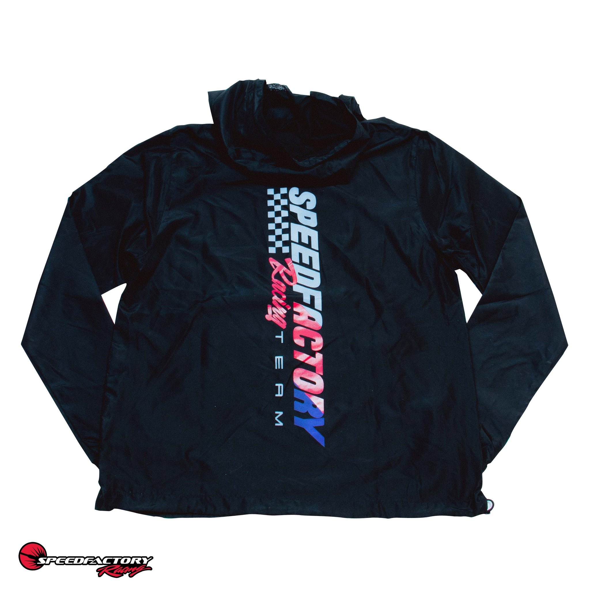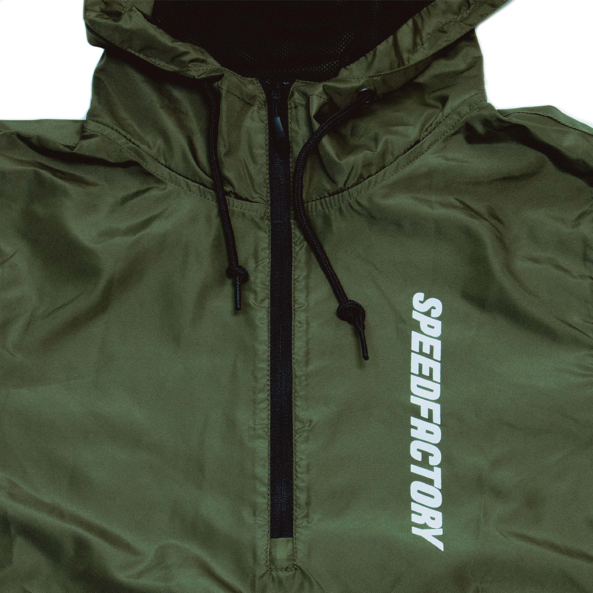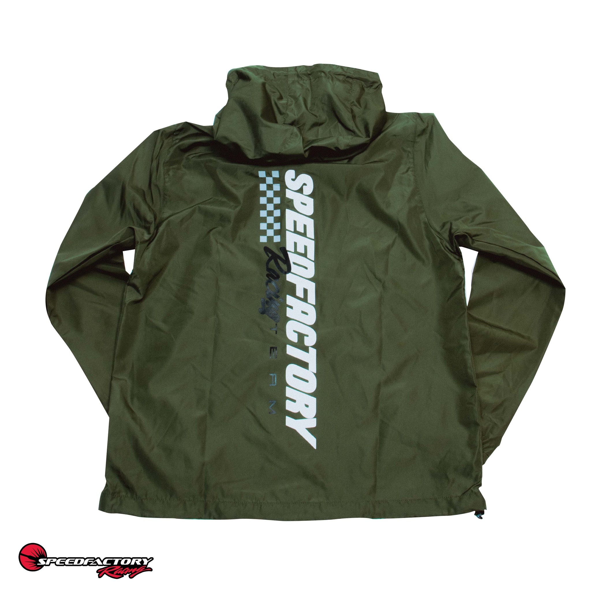 Your crew will love the look and you'll be impressed by the performance against the elements - The SpeedFactory Race Team Edition Anorak Jacket is here! These light and easy waterproof jackets repel water, block wind, and will keep you comfortable on those brisk track days & nights. This jacket keeps things simple with a clean cut aesthetic and features a 3 panel mesh-lined hood, matte finish eyelets, elastic cuffs, and a tightening toggle at the waistband. Represent for your favorite racing team and order yours now - Available in BLACK or ARMY GREEN in adult sizes S-3XL!