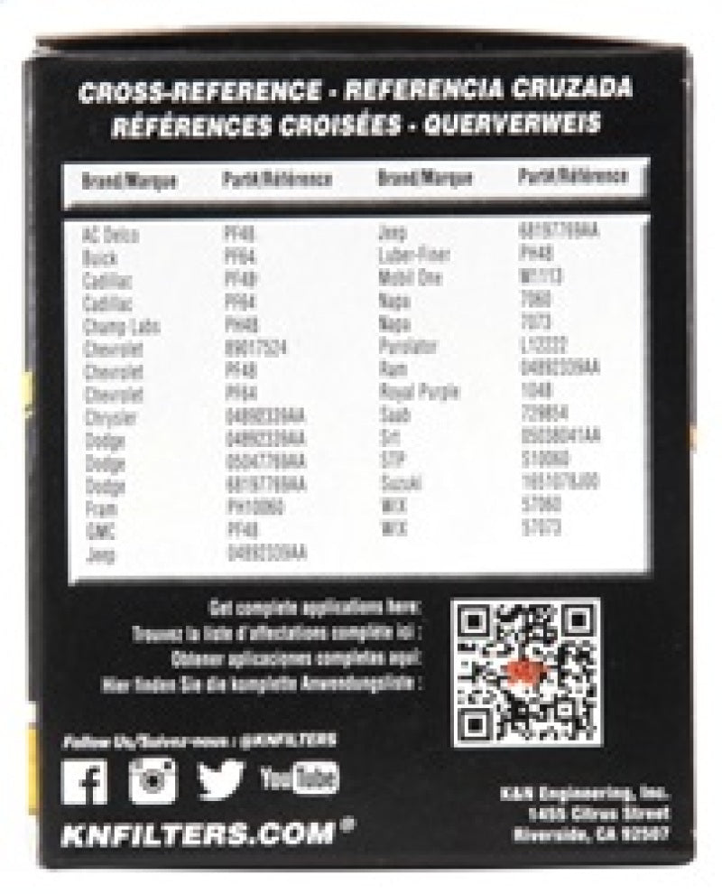 K&N premium oil filters are meticulously engineered to offer outstanding filtration and engine protection. Designed to operate with all synthetic, conventional, and blended motor oils, K&N's pleated synthetic-blend filtration media helps to shield your engine from contaminants and ensure a consistent flow of oil. The heavy-duty canister is engineered to be exceptionally durable, and a one-inch welded hex nut can be used for quick and easy filter removal. Each filter is specifically designed to withstand the service intervals recommended by vehicle manufacturers, and is protected by the K&N 1-Year Limited Warranty.