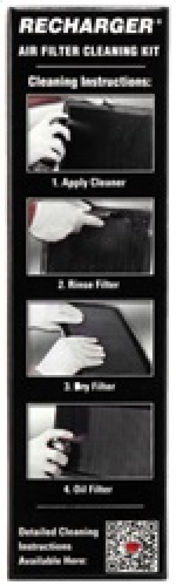 K&N Recharger Kit 99-5000 is designed to restore the performance of your K&N oiled cotton air filter, and includes a 6.5-ounce aerosol can of oil and a 12-ounce spray bottle of POWER KLEEN. POWER KLEEN industrial strength degreaser helps dissolve dirt, old filter oil, and other filter-clogging particulates, allowing them to be rinsed away easily with water. When used as directed, the included air filter oil remains suspended in the pleats of the cotton filter material, allowing for exceptional contaminant capture. View the complete cleaning instructions included in your kit.