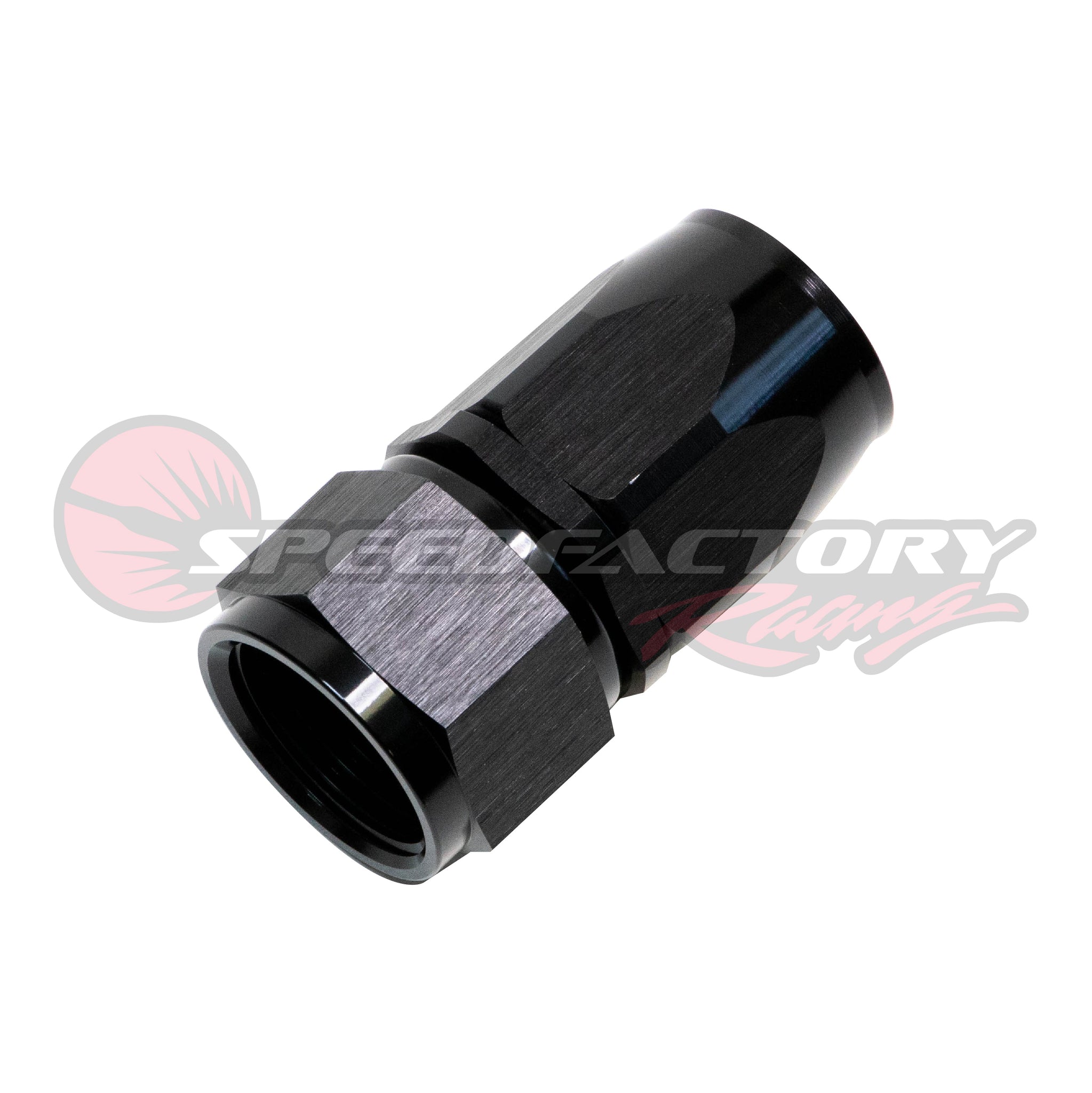 Complete your fluid delivery plumbing confidently with our aerospace-quality double swivel black anodized aluminum hose end fittings that offer trouble-free installation and the performance you expect from SpeedFactory Racing. Sold Each.
